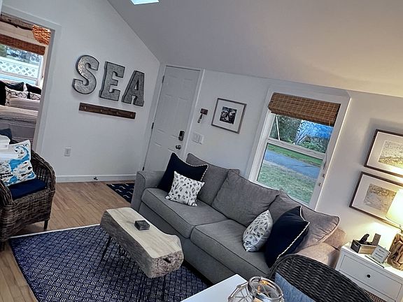 Quaint cottage 100 steps from the Beach The Basics: Cozy Cape Cod Cottage literally 100 steps from Glendon Road Beach with access to private beach on Old Wharf. The house has beautifully refinished antique pine floors throughout and freshly remodeled kitchen and baths! The kitchen adorns new stainless steel appliances, farmhouse sink, subway tile back splash, antique butcher block island, and various other elements of modern farmhouse decor. C The living and dining room have subtle gray and white painted ship lap pine paneling. A flat screen 50" TV, wifi, cable TV, internet cable, and DVD player allow guests to stay connected while the large farmhouse table can seat up to 8 for a nice hearty meal. Additionally, there is two sets of outdoor patio furniture to enjoy a meal outside. There are two bedrooms, one upper level and one lower. Both tastefully decorated and remodeled. Memory foam queen beds, painted ship lap paneling, barn style closet door, and unique lighting allow for a comfortable nights sleep. The house has 2 freshly remodeled bathrooms, equipped with Toto Eco Friendly toilets, rainforest shower in the upper, antique clawfoot tub in the lower, both adorned with stenciled ceramic tile floors and subway tile shower surround. You walk down the stair case and enter the lower level to find another great room with pull out sleeper sofa and a twin over full bunk bed. There is a 2nd flat screen mounted over the mantle so the kids have a TV of their own on those occasional rainy days. The house has 4 window unit air conditioners, dehumidifier with built in drain pump, as well as forced hot air heat which allows guests to keep temperatures regulated and comfortable no matter the weather. The large front yard and fire pit are a wonderful pass time for evening socializing and relaxing. The house is a stones throw from famous Sundae School as well as other wonderful restaurants like Kreme N Kone, Swan River Restaurant and Fish Market, and many others. Yarmouth is a 10 minute drive packed with mini golf, water park, bumper cars, and much more for the kids (and young at heart)! Owner pay for all utilities and free internet access available for use. Pets fee apply for all pet you have.