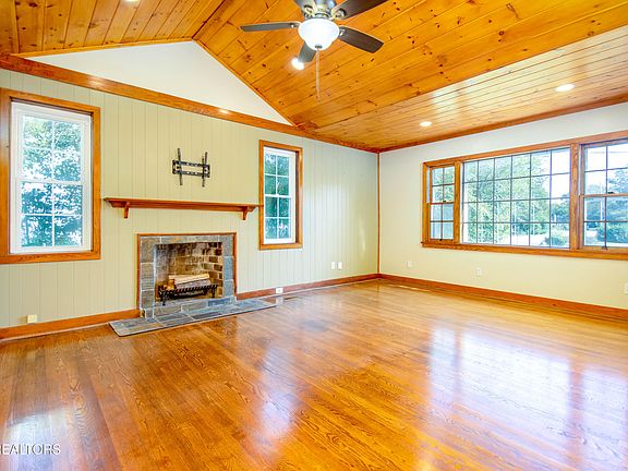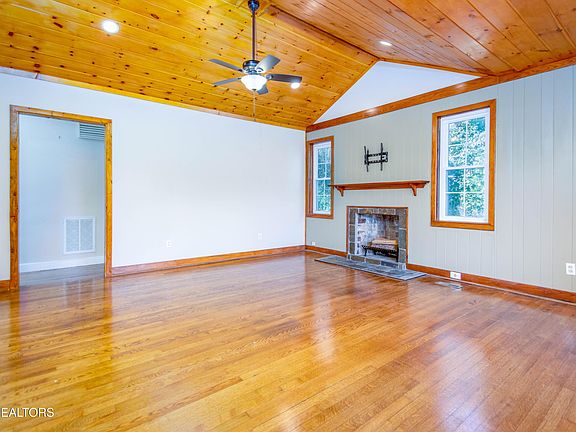 Step inside to the MOST gorgeous cathedral tongue-and-groove ceiling... total showstopper! And a huge window that lets in all the natural light. The wood beams, baseboards and trim around the doors and windows tie it all together with a big, beautiful bow!