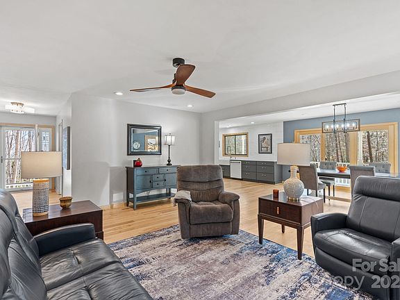 Beautiful home on 1+ acre with fenced backyard. Enjoy the conveniences of downtown Asheville just minutes away but with no city taxes. Cafe line appliances, walk-in pantry with coffee bar are some of the features in newly renovated kitchen. The main level features beautiful Hickory hardwood floors, large laundry room and primary bedroom. Wrap around covered porch great for enjoying winter mountain views or relaxing in the shade on a summer day. Contemporary gas fireplace. Large double car basement garage has plenty of room for a workshop. Lots of storage throughout the home highlighted by walk-in closets in all bedroom. Stove has 6 gas top burners and two electric ovens. Upstairs bathroom is a Jack and Jill layout. Public sewer and private well. Above ground propane tank is leased. Refrigerator in basement conveys. Water filtration system on the well.