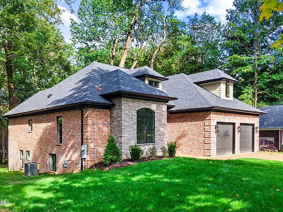 Tucked away in the heart of highly sought-after Pewee Valley, this brand-new construction offers an impressive blend of timeless craftsmanship and modern design. The all brick-and-stone walkout ranch sits on a private, wooded .76-acre lot, giving you the rare combination of space, privacy, and convenience. Step inside through custom double wood entry doors to find soaring ceilings, abundant natural light, and an open floor plan that's perfect for both everyday living and entertaining. The great room is the centerpiece of the home, featuring a vaulted ceiling, a striking shiplap-accented gas fireplace, and seamless flow into the gourmet kitchen. Here you'll find a massive island, quartz countertops, stainless steel appliances with a gas range, and elegant finishes throughout. The primary suite is a true retreat, highlighted by a custom wainscoting accent wall, spa-like bathroom with a large soaker tub, double vanity, oversized walk-in shower with custom tile, and French gold fixtures. A giant walk-in closet provides more than enough space to stay organized. Each of the five bedrooms is generously sized with walk-in closets, and all three full bathrooms are finished with high-end details. Downstairs, the fully finished walkout basement expands the living space with a large open area, media room potential, a full wet bar with beverage refrigerator, and two huge bedrooms with a full bath. There's also plenty of unfinished storage. Outdoors, you'll enjoy a spacious rear deck and a patio below, both overlooking the private backyard surrounded by mature trees. Additional highlights include high-end LVP flooring, upgraded lighting throughout, an oversized two-car garage, and a large laundry room. The location offers quick access to I-265 via Old Henry Road, and is just minutes from historic Pewee Valley, Middletown, dining, shopping, parks, and award-winning Oldham County schools. This home truly checks every box; space, luxury, and convenience, all wrapped up in one extraordinary property.