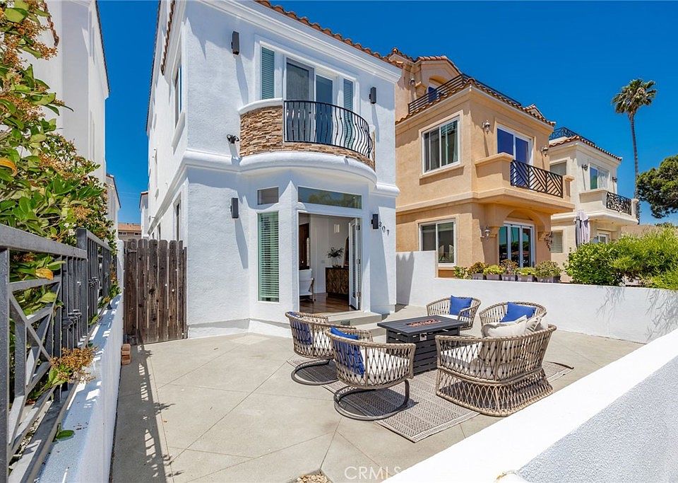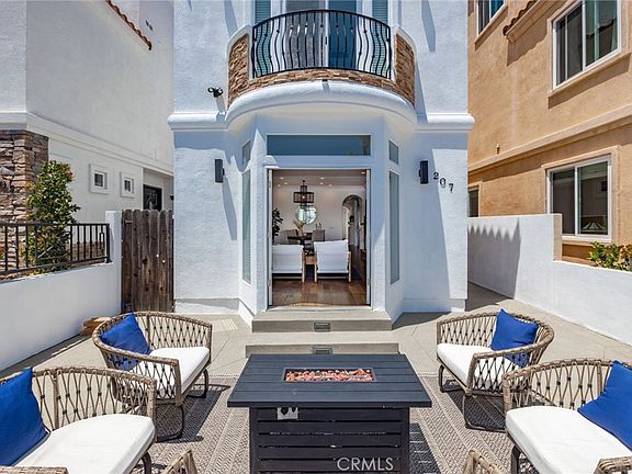 LOCATION! LOCATION! LOCATION! Welcome to the epitome of coastal and downtown living in the beautiful city of Huntington Beach! This stunning three story beach home makes you feel like you are on vacation every single day. The short walk to the iconic Huntington Beach Pier, the newest Pacific City shopping center and Main Street will have you feeling connected to your new neighborhood. As you arrive, you'll be welcomed by a sun-drenched and inviting patio, accompanied by two entrances to the home. Step through the solid wood double doors, and a spacious living room and formal dining area greet you, bathed in natural light with direct access to the front patio. The gourmet kitchen is a chef's delight, complete with high-end stainless steel appliances, built-in microwave, stove, and warmer, a 5-burner cooktop, coffee bar, breakfast bar island, gas fireplace, and an additional dining or sitting area. On the first level, you'll also find a powder room, a laundry room with ample storage, and direct access to the garage. The second level hosts another generously sized family room featuring high ceilings, two-story windows for abundant natural light, a gas fireplace, a powder room in the hallway, and all three bedrooms. The luxurious master suite is a haven of relaxation, boasting a private view balcony, gas fireplace, double sink, jacuzzi tub, walk-in shower, private toilet, and a spacious walk-in closet. The two other bedrooms share a Jack and Jill full bathroom. Ascend to the third level and discover a versatile bonus room that can be customized to fit your needs. Currently serving as an additional family room, it offers ample space for multiple uses, and another private balcony showcasing one of the best views in the home. Access to the 2-car garage is conveniently located at the back of the property, along with parking for four cars and an outdoor shower.