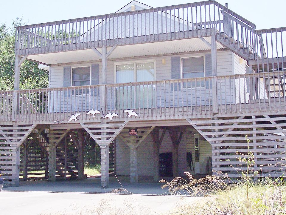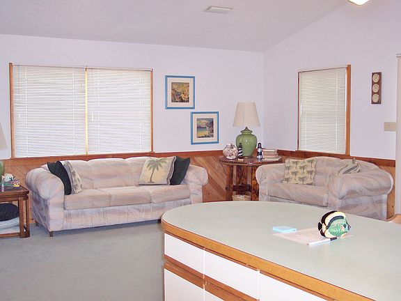 NEVER rented--Beautifully maintained home-carpet looks brand new! This is not your typical beach box, MUCH larger, huge utility room, awesome rooftop deck, plus a covered deck. Very large concrete area under house, dry entry. All bedrooms are very good size. All this on a nice quiet street. Mature live oaks, new roof in 2009, HVAC is only about 4 years old, fridge and dishwasher are about 3 years old. You won't be disappointed with the quality and the upkeep of this one. Shows great. Please take shoes off, carpet is immaculate. Furnishings included with a few exclusions.