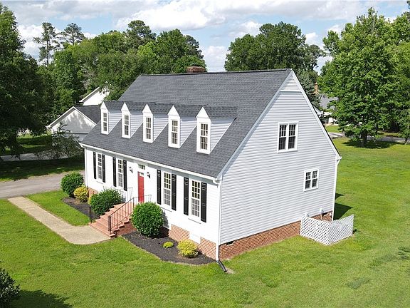 Come see this fantastic home in Conjurer's Neck, a one of a kind neighborhood in Colonial Heights! This freshly updated Cape Cod offers a newer roof (2022), new vinyl siding (2024) thermal replacement windows (2015), 2-zone HVAC's updated (2020 & 2023), & new paint throughout w/updated LED lighting! The oak hardwoods & 9 ft. ceilings span the entire main level, including the 1st floor primary w/ensuite & it's 2 WIC's, & continue through the family room, large bright sunroom & formal dining room, ending in the 22ft. long eat-in kitchen featuring large bay window, massive amounts of cabinets & pantry. The main levels also offers direct access to the back yard & attached newly painted 2-car garage featuring 2 brand new garage door motors. The newly carpeted upstairs gives another 3 nicely sized bedrooms (2 w/large WIC's), dble vanity hall bath & completed by an additional private office/play room/flex space. The floored pulldown attic & closets galore provide ample storage space. Outside, the paved driveway leads to the side-loading 2-car garage, fresh landscaping on the flat half acre lot on this quiet street w/loads of space for entertaining friends & family, inside & out! The home also has a natural gas line already connected @ the street. This home's location comes w/multiple parks within walking distance, in the highly sought after Tussing Elementary School district, while highways, shopping & dining are just minutes away. Come discover everything this home has to offer!!