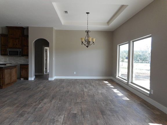 NEW CONSTRUCTION. Lot backs up to creek. Spacious family size home w/ open concept kitchen/dining/living room. Wood burning fireplace w/ soaring rock front. All ceilings are 10' high. Lots of light. Living room and master bedroom have direct access to covered patio. Jack/Jill full bath between bedrooms 2 & 3. Front office/study or could be formal dining if 2 eating areas are needed. Huge master closet w/ lots of built in shelves. Large walk in shower w/ seat. Pretty view from patio. Oversize garage. HOA river front park offers amenities for family fun or entertaining large guest party.