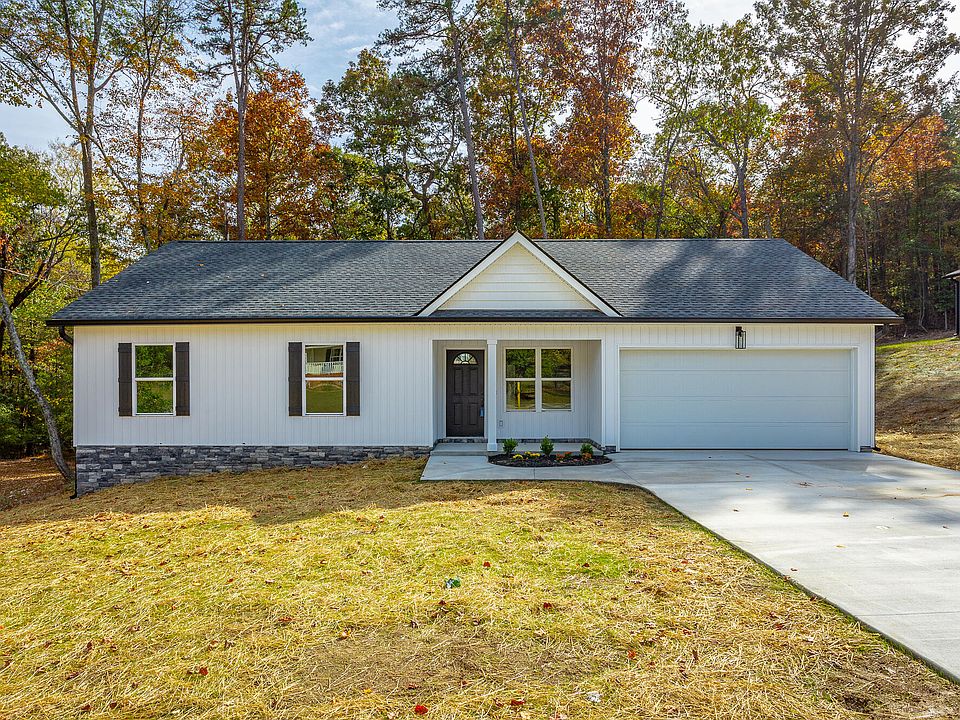 REDUCED- NEW CONSTRUCTION , USDA ELIGIBLE All one level Rancher with open concept living and dining. The kitchen has white cabinets, granite countertops, stainless appliance package and a pantry for extra storage. The laundry room is just off the kitchen and has a closet for additional storage. The den/family room features a vaulted ceiling and vinyl plank flooring. Master bedroom features include a trey ceiling and a master bathroom with double sinks. Exterior features include covered front and back porches, a double garage and a private backyard. Schedule your appointment today to see 207 Darvin Lane.