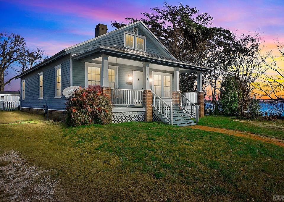 Seeking a home with water views and the charm of a historical era? Tucked away on a peaceful street in downtown Hertford, this charming home offers a smorgasbord of cafes &,shops right on your doorstep, conveniently located near the commercial heart of the city. If you head in the opposite direction for just a few yards you are at the banks of the Perquimans River. Inside an open floor plan w/ living room, dining room & kitchen provides an easy flow for entertaining. Welcome home to river views and a home style from yesteryear which will remain timeless & elegant for years to come .