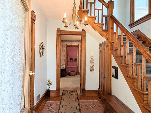 Full of character and charm, this 4-bedroom home showcases details rarely found in modern construction. Inside, you’ll find 9-foot ceilings, original wood trim, and a beautifully preserved tile fireplace that anchors the living space. The first floor offers a formal entry with an open staircase, convenient laundry, and a newly added half bath—bringing everyday functionality to classic design. Upstairs, the updated full bath provides modern comfort while complementing the home’s timeless style. Outside, enjoy the inviting front porch with a swing or unwind on the side deck off the kitchen—perfect spots to relax or entertain.