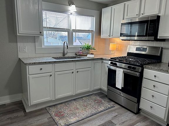 Move right into this updated two-story home with four bedrooms and two full bathrooms in the heart of Paola. The newer windows offer an abundance of natural light, making it feel welcoming. Enjoy the low-maintenance vinyl flooring and the updated fixtures. The open-concept kitchen features granite countertops, fresh white backsplash, stainless steel appliances, and space for a breakfast dining area. The bedrooms offer excellent living space and brand-new carpet that was just installed! Enjoy the spacious fully fenced yard that’s perfect for entertaining! Other recent updates include the roof, furnace, a/c, and water heater. Hurry, this one won't last!