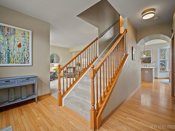 Welcome to this beautiful home in Windsor Pointe! This home has a fabulously updated kitchen with quartz countertops, herringbone tile backsplash, stainless steel appliances and family room with updated gas fireplace. There is a freshly finished basement with gorgeous flooring and full bath. Space for exercise equipment, family room and much more! There is also a laundry tub in the unfinished storage room. The primary suite is light and bright with lots of windows, dual closets, large bath with separate tub and shower and dual sinks. The heated garage offers epoxy floors and side door to fully fenced yard with shed. The neighborhood offers 2 parks, fishing pond, close walk to stores and restaurants and Gilman trail access should be completed soon. Location is just minutes away from I-88. You won't want to miss this home!