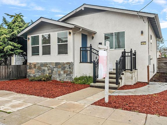 Step into this stunningly updated, eccentrically styled 2-bedroom, 1 bath gem that blends charm and modern living. From the moment you arrive, you'll be greeted by a brand new entry staircase and elegant iron railings, complemented by a fresh stucco exterior and a striking stone accent wall. Inside, enjoy new flooring, fresh paint, and updated baseboards throughout. The main living area is perfect for entertaining, relaxing, or enjoying cozy movie nights. The open-concept design flows effortlessly into a welcoming dinette area and a thoughtfully designed kitchen. Featuring brand-new appliances, sleek white shaker cabinetry, and a chic contemporary backsplash, the kitchen was made with the cooking enthusiast in mind offering multiple prep areas and ample storage. Both bedrooms are warm and inviting, with one offering an additional leisure space ideal for morning coffee, quiet reading, or even a creative nook. Step outside to the beautifully designed backyard with stamped concrete, perfect for stylish gatherings and family celebrations. Additional features include a detached 1-car garage and a full basement adding flexibility and extra storage. This home is move-in ready and bursting with personality. Come take a tour TODAY and experience it for yourself!