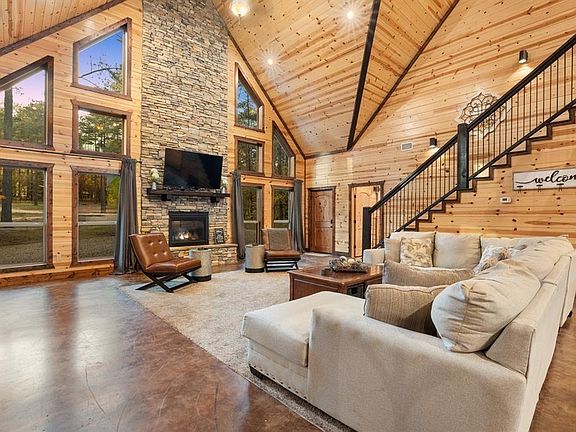 The Good Place Cabin is a 5-bedroom, 5.5-bathroom log cabin in Pine Hill North spanning 3,688 square feet on 1.1 acres offers a spacious and rustic living environment. The first floor, you will find 3 large King master bedrooms – each with en-suite bathrooms and a half-bath right next to the living room. The Good Place upstairs features a loft with a pool table and large Smart TV. To the right is a King bedroom with one set of twin bunks and a full bathroom. To the left of the loft is another King bedroom with a set of twin bunks and another full bathroom. The covered back deck, where you can unwind and enjoy which is located just off the dining room. Also on the back deck, is a bubbly hot tub for some well-deserved relaxation. Enjoy a game of Corn Hole while cooking. There is no need to look anywhere else …this really is “The Good Place”! Located near a winery and breweries, you can enjoy the convenience of indulging in local wines and craft beers. Additionally, being close to the Choctaw Landing resort provides easy access to recreational activities and amenities such as dining, entertainment, and outdoor adventures.