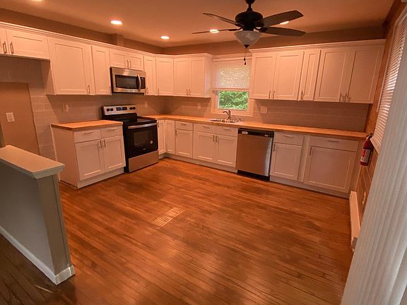 Home has hardwood floors , FULL stand up basement, large outside deck , private setting long 4 car circular driveway , hardwood floor's just refinished , fresh paint , new windows move right in jump in the lake , swim and golf ! New Kitchen and appliances being completed now . 2 bedrooms large private flat yard .