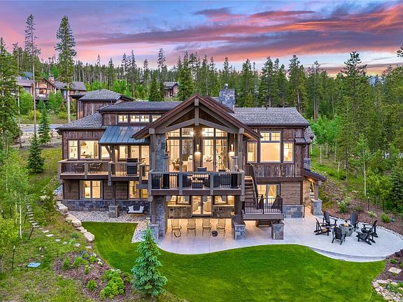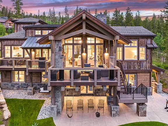 This incredible Fairways residence was specifically designed to take full advantage of its private setting overlooking the Breckenridge Golf Course with views to both the Gore and Williams Fork Ranges and beyond. Completed in 2022 by Rockridge Builders, this masterpiece has a clean mountain farmhouse design that is super refreshing in today’s market. The thoughtful floor plan has direct visual connection between the breathtaking gourmet kitchen, dining room and stunning great room. The covered outdoor living room facilitates grilling on snowy nights or cozying up around the roaring fire with a glass of wine in hand. The Grand Suite is dedicated to the main level for the owner’s convenience, with a second non-conforming bedroom upstairs for your guest’s privacy. The lower level encompasses a beautiful walk out family room, a one of kind family bedroom-suite with custom built in bunks, a secondary guest suite and a dedicated workout room. All of your guests will enjoy the comfort provided by the top of the line oxygen system. The grounds offer a gently sloping grass backyard with concrete patio and fire pit for roasting marshmallows and enjoying laughter with the little and big kids in the family. The oversized two car garage with gear bay and overhead storage is perfect for the mountain enthusiasts.