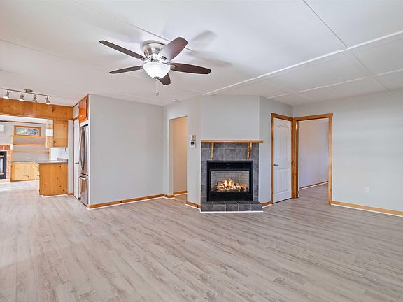 Updated bungalowClean modern lookTwo large bedroomsEat-in kitchenTwo propane fireplacesBright interiorSliding patio doors