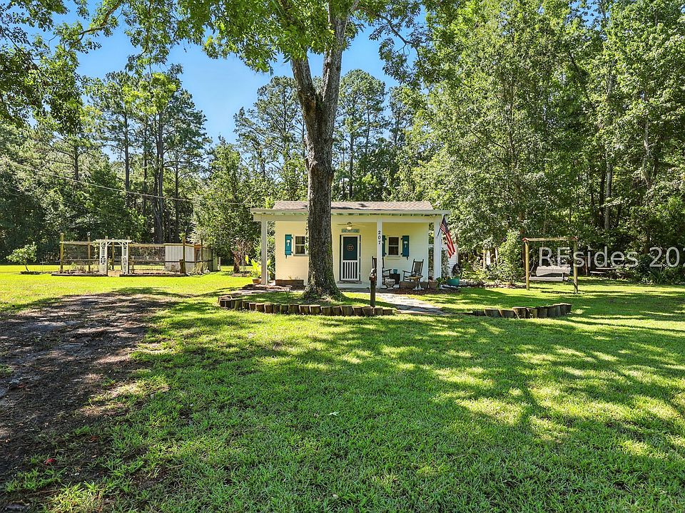 Short Term Rental Cottage on 2.32 Acres. Overflowing with character from every angle, this home features vaulted ceilings, tile flooring, a primary bedroom addition, indoor and outdoor showers, a tankless water heater, and fresh paint throughout. Outside, you'll find a producing pecan tree, three mature pear trees, a citrus tree, and even a chicken coop- perfect for those looking to embrace homesteading. Additional amenities include a one-bay storage, fire pit, and picnic area. With 2.32 acres, the possibilities are endless: enjoy it as a cozy retreat, generate income while you wait, or plan for the future and build your dream home on this spacious acreage. Financing is available, making this a rare opportunity to own a versatile property that blends immediate comfort with long-term potential. Proven short-term rental income of almost $30,000! 10 minutes to downtown Beaufort, 5 minutes from Habersham.