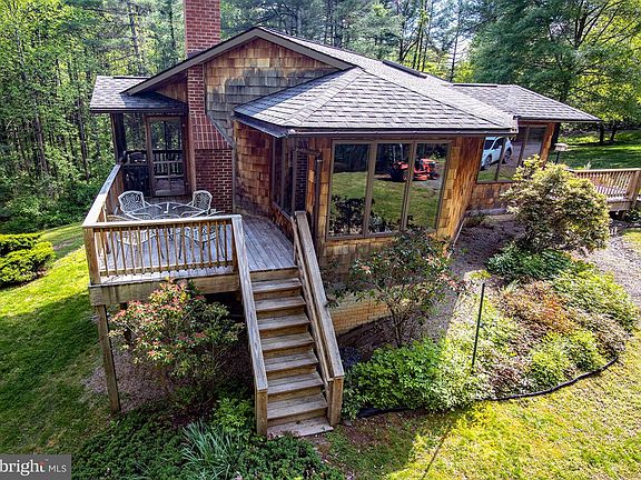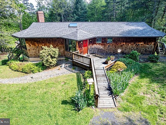 Rush River Retreat: Relax in the comfort while enjoying privacy in the Frank Lloyd Wright influenced, architect-designed custom built home situated on 7 acres on the Rush River. Designed for living on the main level with Master bedroom with custom window seat, walk-in shower. Larger Kitchen, w/ granite countertops, large pantry, and breakfast nook. Stone Fireplace with a cherry mantle in the living room. The lower level has two bedrooms, a full bath, a large family room, and a workroom, the Lower also has two walkout entries /exits. You can enjoy a private pathway to the river or a pollinator's garden as you relax in the natural surroundings. Located just outside of Little Washington in a quiet neighborhood with high-speed internet access. Roof replaced in 2019. 2 zoned AC has been updated within the past two years.