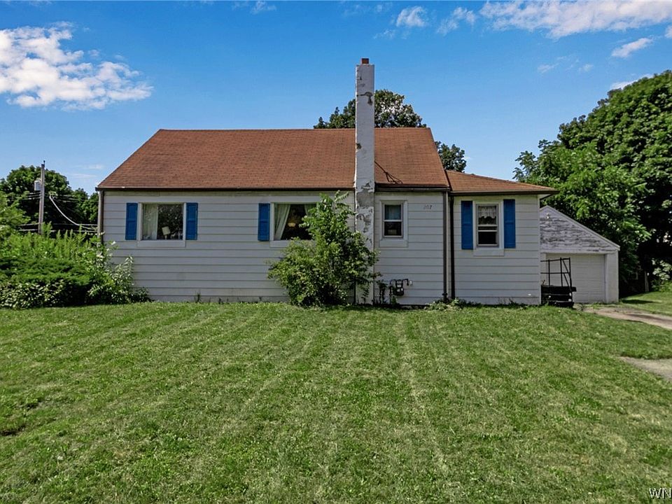 Welcome home to this charming 2 bedroom ranch on a huge park like lot. From the spacious mudroom, enter a cozy open living and dining space. Kitchen in beautiful condition, includes appliances, and has ample cabinet space. Two spacious bedrooms and full bath make this the perfect home for comfortable, easy living. Full basement and detached 1.5 car garage for all of your storage needs. Close to all conveniences and in the highly rated Clarence school district. Loads of opportunity. Don’t miss this one! Showings begin immediately.