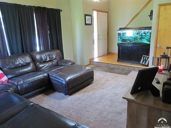 Super 2 story, 3 BR with full partially finished basement, 2 full BA, one 3/4 BA & one 1/2 BA, kitchen/dining room combo. Basement has potential for more finished living space and has 4th non-conforming BR. 2 car garage, large deck and a pool. Great for entertaining & having friends over! Great neighborhood, hometown conveniences & easy commute to Lawrence, KC & Legends. Great opportunity for sale lower than county valuations: needs work.