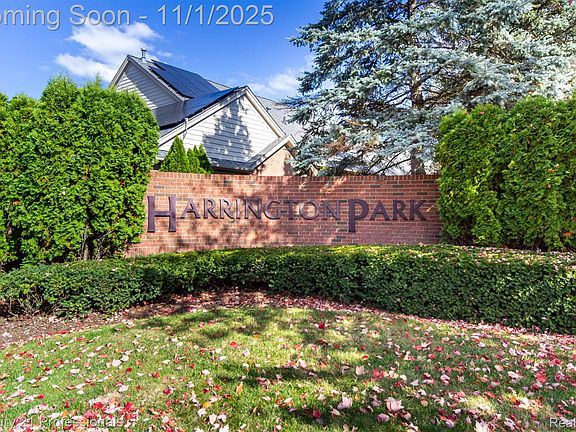 Luxury, Comfort, and Location: This corner unit in Troy's highly sought after Harrington Park Condominiums is surrounded by mature trees for privacy.. The stately brick exterior with private entry gate will lead you to luxurious and cozy unit. The high ceilings throughout the entry level give it a large, open feel. The classic wood floors, wood cabinets and granite countertops create a timeless design in the kitchen. In addition, the kitchen has a spacious breakfast nook with a sliding door to a brick paved courtyard. The architectural design is a well thought out floorplan, and it has an entry-level Primary Suite with a large primary bathroom, a spacious living room with beautiful crown molding and custom woodwork, open to the dining room with a double fireplace, on the other side of the fireplace is a cozy library. Double French doored library can be used as a 3rd bedroom. Take the stairs up to the second bedroom with a full bath. Easy living, the Condominium Association covers landscape, snow removal, lawn/grounds maintenance, as well as water. Troy School District. Ready to move-in!!