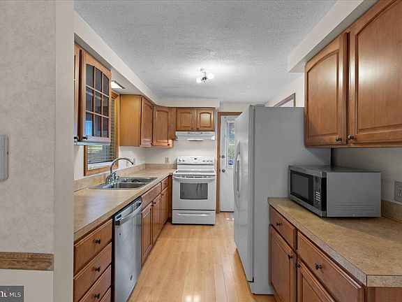 A great starter home or one to scale down to! Sits off the main road with privacy and a nice private back yard. The driveway has been recently paved for ease of entry. There are three bedrooms on the first floor and the bath opens to the primary bedroom also. The lower level is mostly finished with a huge bathroom and finished exercise and area for bedroom. The lower level has access to the exterior from a separate door. Heat pump was installed in 2018. The house is being sold in AS IS condition only, see addendum in documents. Everything is in working order according to the seller but needs a few cosmetic touch ups.