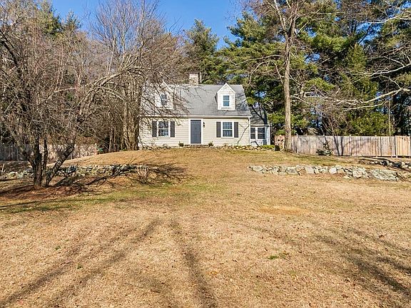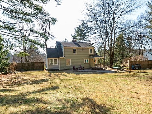 This charming 3 BR Cape sits back off the road atop a knoll w/beautiful private backyard. Hardwood floors mostly through out (except kitchen, baths and playroom). First floor includes: formal DR w/built in china cabinet, front to back LR w/wood stove, mantel & stone facade. The kitchen was updated by previous owners w/granite counters and separate butcher block counter w/more cabinets. A pretty tile floor extends into the 1/4 bath just off the kitchen. You can keep an eye on the young ones in the 1st floor playroom w/lots of natural light. Second floor includes: all 3 BR's (including master) & full bath/shower. Full basement has storage and office which walks out to the driveway. The yard is amazing! A beautiful patio is just outside the back door and overlooks a level, open and treelined yard. There's more than enough room for a swing set and pool if desired. A large storage shed and even a greenhouse completes the yard. Showings begin 9AM Sat 3/7. OH's Sat & Sun 3/7-8 from 12-2pm.