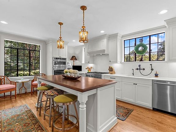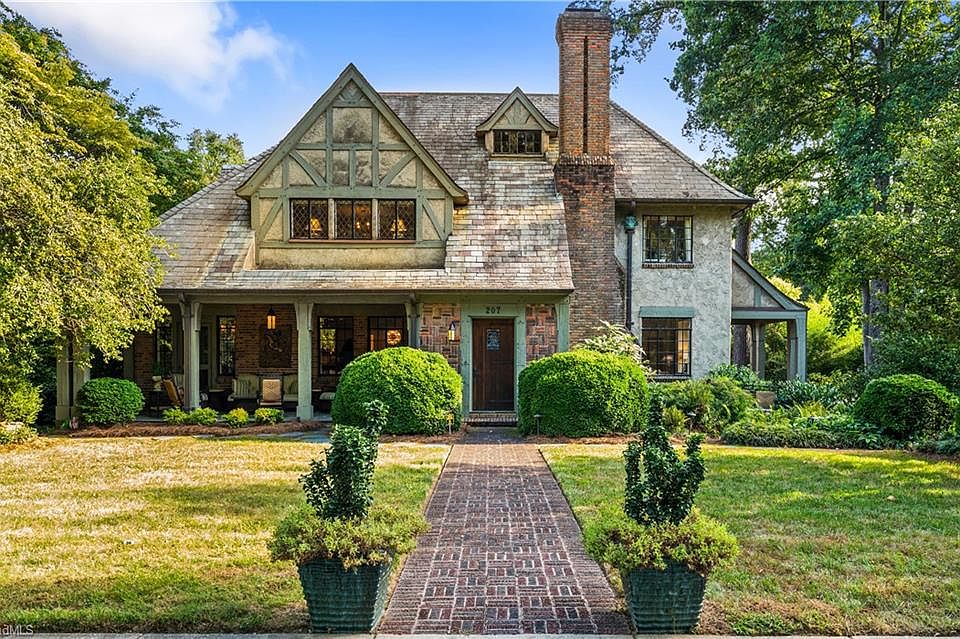 This 1926 English Tudor estate is a perfect blend of historic charm with modern conveniences. The kitchen has been completely redesigned and now features upgraded, high end appliances and custom marble countertops. All hardwoods have been restored and gleam throughout. The screened-in back porch with wood burning fire place is a wonderful space for entertaining & enjoying the NC weather. The sunroom off the grand living room overlooks one of five unique entertaining spaces around the property, and there is a grand portico that includes a supercharger for an electric vehicle. An oversized primary bedroom upstairs has an updated bathroom while the other 4 bedrooms each have en-suite bathrooms each with their unique touches. Walk up attic is over 300 sq feet and floored for storage or ready to finish out as additional living space. Ample storage and closet space throughout the home. This special home on the tree-lined streets of Emerywood is truly one of a kind!