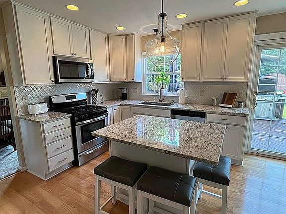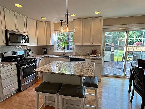 The open floor plan, newly remodeled kitchen with large island, updated primary suite, and granite countertops throughout, makes this home ideal for entertaining. A partially finished basement creates a perfect space for a sports/fitness room and playroom. Another beautiful feature is the spacious, private, and fully fenced-in back yard with 100 feet of private woods, 10x12 Duro shed with new roof, and large pressure treated deck. Freshly painted exterior and stained deck!
