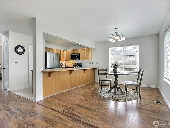 Thoughtfully designed floor plan, situated at the end of a peaceful cul-de-sac, no HOA. Seller offering $5,000 CC bonus. As you enter, you're greeted by a light filled formal living area w/ high ceilings, flows into a spacious kitchen featuring a large island, & dining area that overlooks a cozy entertainment space w/gas fireplace-perfect for cooler evenings. Step outside to a generously sized backyard, complete w/garden space & fruit trees, endless possibilities. Upstairs, you'll find primary suite w/bath, along with 2 additional nice sized bedrms. Two-car garage, equipped w/electric car charger & workbench, catering to both convenience & functionality. Conveniently located near parks, trails & rivers, ideal choice for outdoor enthusiasts.