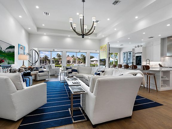 MODEL PERFECT! RARELY OFFERED PRIVATE ISLAND seconds to intracoastal. Recent TOTAL reconstruction and expansion w/contemporary architectural features by renowned designer. One story open concept floorplan w/4 BR/3 1/2 BA/office w/industrial barn door. Brand new flat tile roof. Walls of glass w/10ft impact sliders. Limestone decking surrounds new beach entry salt water pool w/ Pentair System. Southern exposure. Fire Pit Chefs summer kitchen w/pizza oven, grill. Full house generator. Kitchen w/10 x 6ft quartzite center island, stainless steel appliances, smart refrigerator w/glass door, beverage center, gas burners, custom white cabinetry to ceiling. Great room w/soaring ceiling, FP, European hardwood oak floors, sunroom w/shiplap ceiling. Gas lights. PRESS MORE FOR FEATURES THIS HOME HAS IT ALL