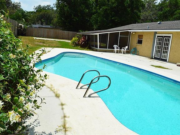 This 2250 sq. ft., 3/2 - 2-car garage, sparkling-pool home just needs you and your float! Perfect for family, entertaining...or just YOU! The cozy front porch greets you as you arrive home. The spacious living room has laminate floors, and opens to the dining room and a family room. The separate dining room has french doors leading to the pool area. The kitchen has tile floors, an open bar to the living room, a wine fridge along with stainless appliances. Off of the kitchen is yet another room ... a large family room with glass sliding doors leading to your large lania that overlooks the pool. The Master bedroom has brand new tiles and attached bath. The master bath is complete with a vanity, toilet, and tiled shower. The 2 other bedrooms have brand new tiles. The hall bath has a new vanity, toilet, and shower/tub combo. The pool and lanai area is perfect for entertaining and overlooks the fenced, large backyard. Your super-size 2 car garage has room for your washer/dryer and work areas. There is also a large 40x40 concrete slab for a basketball court, RV.. or you name it! Close to I-92, I-75 and I-4 and walking distance to local schools. Close to restaurants, shopping, and entertainment. Bring your float...this beauty is move-in ready!