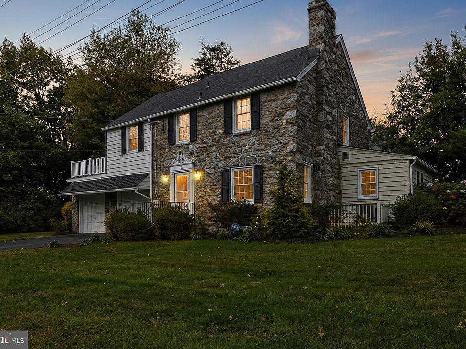 Welcome home to this beautifully maintained 3-bedroom, 2.5-bath stone colonial perfectly situated on a landscaped corner lot in the sought-after neighborhood. This move-in-ready home blends timeless character with modern updates, featuring hardwood floors, deep window sills, and detailed moldings throughout. The spacious great room offers a wood-burning fireplace and flows into the dining room with a bay window and chair rail molding. A private home office/bonus room with a stone accent wall and powder room offers flexibility as a potential 4th bedroom. The updated eat-in kitchen has wood cabinetry, stainless steel appliances, modern countertops, a pantry, and a sunny breakfast area with access to the slate patio—perfect for entertaining . Upstairs, the primary suite includes a walk-in closet and a retro-inspired full bath. The second bedroom features a large dressing area with multiple closets and direct access to a rooftop deck overlooking the yard. A third bedroom and updated hall bath complete the upper level. All bedrooms are of a nice size. Additional highlights include: Attached 2-car garage with inside access, Basement with abundant storage, Newer roof (2022), gas furnace & central air (2020), Replacement windows, Spacious side yard with mature landscaping. Located in the Brandywine School District, just minutes to shopping, restaurants, and major commuter routes, this home offers the perfect balance of charm, comfort, and convenience.