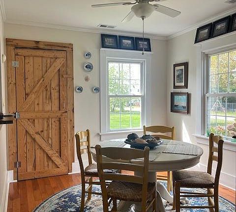 You will not only fall in love with this charming coastal cottage, but also with the beautiful and quaint coastal community it's located in. The owners' pride in this home is evident as soon as you enter. On the first floor, you'll find two bedrooms and a full bathroom, along with beautiful hardwood flooring in most rooms, crown moldings, a spacious living room, a breakfast nook, and a kitchen featuring marble countertops and stainless steel appliances. (The sellers indicate that the refrigerator is newer, approximately from 2021; the electric range is approximately from 2019; and the dishwasher is 2021.)