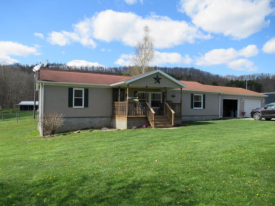 Danese- Wonderful 3 bedroom, 2 bath ranch home on 42 acres. This home features hardwood and ceramic floors, new heat pump, 2 car attached insulated garage, covered front porch, open rear deck, 4 stall horse barn with concrete paddock, riding arena, round-pin and 2 stocked ponds. The property is mostly fenced, features great pasture land, 2 streams, 1-2 springs, and great for hunting. Mineral right