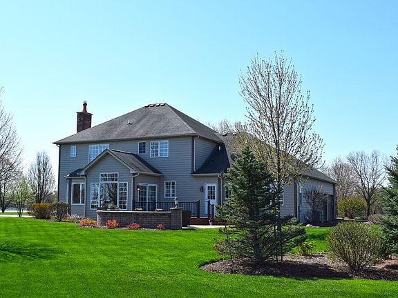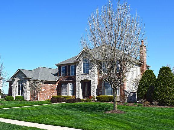 Georgian-style Merry Oaks home custom built by Southampton Builders! Double 8' doors open into foyer area showcasing wainscoting detail, wrought iron spindled staircase & white 3-piece crown molding. Dining Room & Living Room present bay windows. Family Room boasts brick wood-burn fireplace w/ gas lit logs, white mantle & side-by-side bookcases. Poplar crown molding, crafted mill-work & plantation shutters add charm to the heart of this home. Sun-room hosts a majestic coffered ceiling. Kitchen presents elegant chandeliers, island/bar w/ granite, pot filler, double oven, 5-burn cook top, wine frig, tile backsplash & pantry. 1st level Den or 5th Bedroom offers access to 3/4 bath! Master Suite boasts tray ceiling, divided walk-in closet, tiled shower, whirlpool & separate vanities w/ granite top. Junior Suite & Jack & Jill floorplan offer direct bathroom convenience! Kohler fixtures, Pella windows, deep basement, Azek deck, brick pillars w/ coach lighting & brick paver patio too!