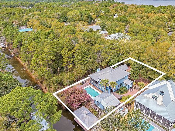 ***Under Contract - Accepting Back-Up Offers*** Nestled in picturesque neighborhood of Point Washington, this canal-front home offers 75 feet of water frontage with a covered boat lift, a guest cottage and a private pool offering endless opportunities for outdoor activities with direct access to the Choctawhatchee Bay. A paver circle driveway provides a welcoming entry to the primary home with three bedrooms and two and one half bathrooms, a spacious floor plan with vaulted ceilings, two living areas and large screened porches. Filled with charm and character, the first level offers an open kitchen with painted cabinetry and stainless steel appliances, a dining nook with a grass-cloth accent wall, a spacious living area with custom built-in display cabinets and a floor to ceiling stone fireplace, powder room, expansive pantry, laundry room and side-entry mudroom. The primary bedroom is also conveniently located on the first level offering a renovated ensuite with dual vanities, a walk-in shower with accent tile and a large soaking tub. The custom iron banister leads to the second level offering two guest rooms sharing a renovated full bathroom and access to the second-level porch overlooking the private pool and canal. The large first-level screened porch leads to the private pool and lounging deck within the fenced backyard. The backyard also offers an additional oversized seating area along with overflow parking. Adjacent to the pool, the charming guest cottage offers flexibility and privacy for guests boasting a sleeping space, kitchenette, full bathroom and laundry room. From the pool, a short walk down the stairs leads to the private dock with a covered boat lift and washing station. With direct access to the Choctawhatchee Bay, this property is perfect for the outdoor enthusiast to enjoy a lifestyle filled with boating, fishing, paddle boarding, kayaking and more. Point Washington provides a location convenient to the 30A community of Grayton Beach along with its sprawling public beach access and the iconic Red Bar. In addition to Grayton Beach, the newly installed bike path connecting Point Washington with Scenic Highway 30A offers easy access to the renowned dining, shopping and entertainment of other 30A favorites like Watercolor, Seaside and Blue Mountain Beach.