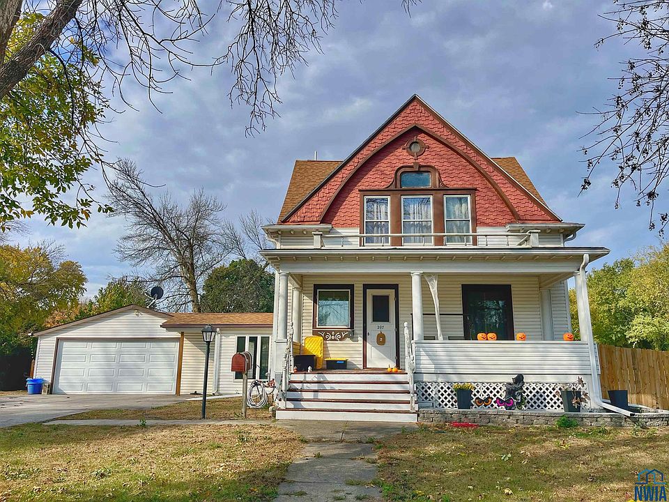 Be one of the first to view this beauty! Step back in time—without giving up the good stuff! Built in 1906, this 4-bedroom, 2-bath home serves up all the character you’ve been dreaming of and the updates that make life easy. Think pocket doors, tall ceilings, wide trim, and an open staircase—the kind of craftsmanship you just can’t find anymore! The kitchen shines with beautiful cabinetry and a tin-accent backsplash that adds just the right touch of flair. Main floor laundry and a 3/4 bath just off the kitchen. Upstairs, you’ll find a refreshed full bathroom with tile flooring, a tiled shower, and a granite-top vanity—plus a walk-in closet in the primary bedroom that’s sure to impress. Enjoy coffee (or a good book!) on the welcoming front porch, gather in the spacious living and dining rooms, or head through the breezeway to the attached two-stall garage. A fully fenced outdoor area lends privacy and safety to the backyard. This spacious property sits on a 1/2 acre lot. Historic charm, modern updates, and plenty of heart—this one’s ready to make you feel right at home!