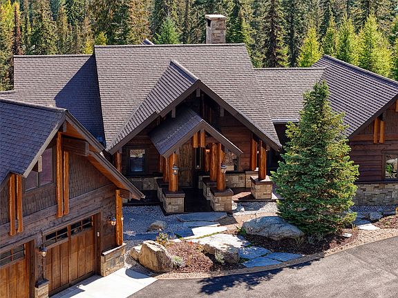 Distinguished. Poised. Elegance. Exclusivity: this Iron Horse estate has it all. With a rustic modern design and sophisticated Montana character, this 5,415 sq ft home was built with a floorplan blending livability with timeless elegance, fit to entertain even the most discerning guests. Offering 6 bedrooms, 7 bathrooms, and a private, beautifully landscaped, lush 1.54-acre lot, this estate is offered fully furnished with recent upgrades, luxurious finishes, and furniture, making it turn-key and move-in-ready. Upon entering, your eyes will fall to the striking great room, with vaulted ceilings, big timber beams, and a show-stopping stone gas fireplace. A full wet bar, chef's kitchen, and newly updated deck flow seamlessly around it. The lower level provides additional living and entertaining spaces, including a second living room, a stone gas fireplace, and full wet bar. Retreat to the primary suite, where you'll be greeted with a dual-sided fireplace, gracing both the bedroom and en suite bathroom, with a jacuzzi tub and large, custom closet. Recent upgrades include new AC and furnace, new decks with long-lasting sealer, blackout shades in most bedrooms, and entirely new landscaping, stone retaining walls, and irrigation system. Rounding out this exceptional property is a 3-car attached garage and abundant storage. Ideally located just 5 minutes to Whitefish Mountain Resort, 7 minutes to Whitefish Lake and downtown, 20 minutes to Glacier Park International Airport, and 35 minutes to Glacier National Park.
