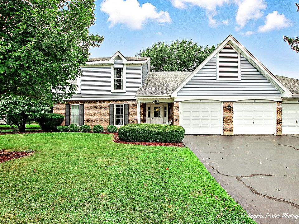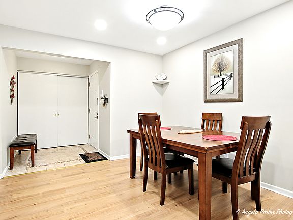 Why rent when you can own this beautifully updated ground-floor ranch condo with no stairs to climb. Featuring 2 bedrooms, 2 full baths, and a spacious open layout, this home offers comfort, convenience, and privacy in a desirable location. Step into the light-filled living and kitchen areas with quality wood laminate hardwood floors throughout. The updated kitchen boasts newer stainless steel appliances (2022), and 2 sliding glass doors off kitchen and Living room that fill the home with natural light and lead to your private patio-perfect for enjoying sunsets and wildlife views. Large primary suite includes a full bath and walk-in closet, while the second bedroom and updated guest bath provide plenty of flexibility. A generous laundry/utility room with cabinet storage and sink adds everyday practicality. Kitchen appliances stay (washer/dryer not included). Additional updates include newer windows, sliding doors, flooring, appliances, water filtration in 2022. Furnace and water heater in 2018. Roof & siding in 2024. Includes a private one-car attached garage. Includes smart thermostat AquaSauna water filtration system w/UV treatment, and EV Charging system. Close to the Fox Ridge Park, schools, dining, shopping, and just 1.8 miles to the Metra UP-NW line.