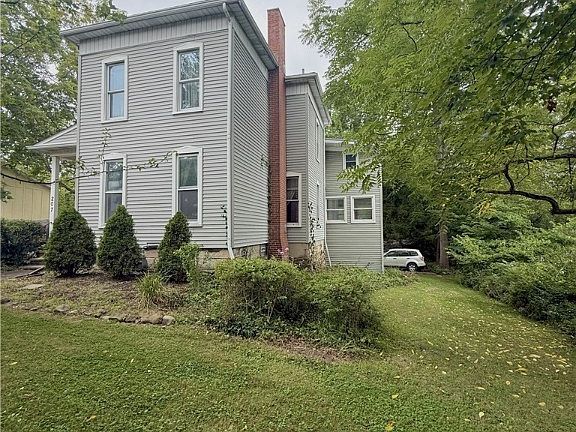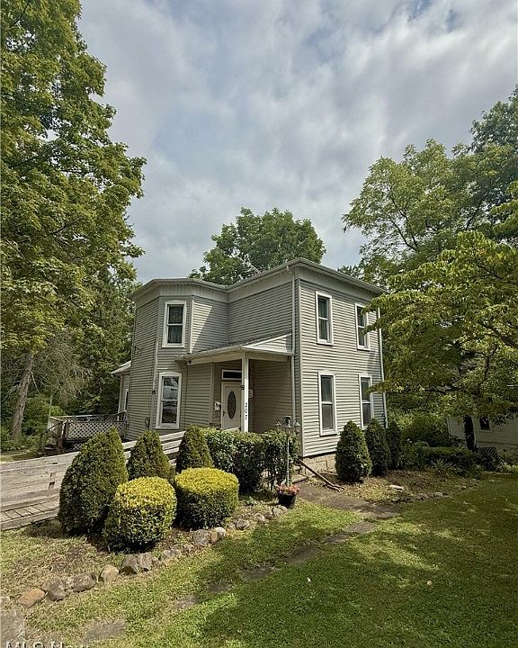 This historic Chardon Square century home, brimming with character and nostalgia, presents a unique opportunity for those seeking to create their dream living space. Steeped in history, it's ideally located just steps from the vibrant atmosphere of Chardon Square. This 4-bed, 2-bath home blends classic charm with practical updates. Enjoy the enduring beauty of hardwood floors through most rooms, complemented by charming built-in cupboards. Practical upgrades include vinyl siding (2001) for low-maintenance living, and a large side porch off the kitchen. The main floor offers flex-space living with two rooms currently used as bedrooms, one featuring a closet and another, a former enclosed sunporch, that now boasts a wall-mounted vent-free gas heater, though it lacks a closet. A full bath on this level adds convenience. The eat-in kitchen, accessible from a side porch, includes a laundry room and pantry for ease. From the kitchen, flow to the dining room with elegant pocket doors leading to the living room, featurning a cozy gas stove with new logs (2018), along with the front entrance to North Hambden Street. Upstairs, discover three bedrooms, including the primary bedroom, and with the second full bathroom complete with a bathtub. The walk-in attic/high-ceiling crawl space offers spacious, easily accessible storage. Beyond the living areas, the unfinished basement is extra-deep, heated, and hosts the boiler system, a Kinetico water softener, and a workroom/workbench area for projects and additional storage. A unique feature is the attached garage, which includes a second garage connected internally and offering extended length. This exceptional property boasts a spacious 3/4-acre lot in the heart of the city center, providing a beautiful backdrop of grass and mature trees for outdoor enjoyment. Embrace the opportunity to transform this historic home into a treasured haven for your family and cultivate your own peaceful garden in this charming Chardon setting.