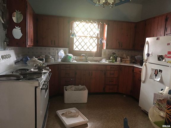 Well maintained 2 bed/2 bath bungalow on a lot and a half, fr. cov. porch, side deck, 1 car garage, famiy room in basement and family room on the main floor with a fireplace, newer furnace, central air and water heater, all in quiet Bluffs Illinois.