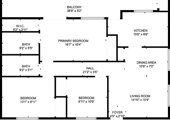 Primary bedroom has direct access to balcony that connect to kitchen.