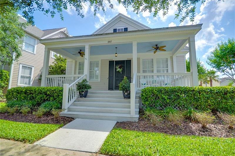 One Story, Morrison Renee Coastal Cottage now available. This home has 3 Bedrooms, 2 Baths, a full size 2 car garage on a LARGE corner lot. This tastefully decorated home has more than $50K of recent improvements. As you approach the home you will appreciate the Curb appeal with over-sized shaded front porch where you can meet your neighbors or just relax. As you enter the expansive welcoming Foyer you will notice all new Interior paint, updated Lighting, Ceiling fans, and Plantation Shutters. The homeowners have spared no expense at remodeling both Baths to reflect today's new Designer looks in Flooring, Cabinetry, seamless shower doors, faucets, and lighting. The Master Bath has a free standing soaking tub in addition to the porcelain Tile Wall and Shower, new Counters, Cabinets and new Rain-shower faucet. The Kitchen was totally renovated by adding all new Custom Cabinets, Counter-tops, oversize Stainless sink with new plumbing and faucets, new Stainless Hood with Cook top, Double oven Range, Microwave, White Subway Tile back-splash, and additional built in pantry. Other features include a Large Fenced Backyard with Pavered Patio that has been Professionally landscaped, newly painted Garage floor, new poured Concrete Driveway, Garage door opener, Storage Cabinets, Re-roofed in 2010, AC 2008 and Hot water in 2007. This is a show place, it will compare to any new built home. The home is located one block from one of Celebrations many pools and parks. Your Home, Your Life, Your Style!