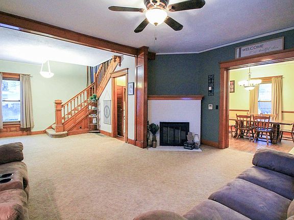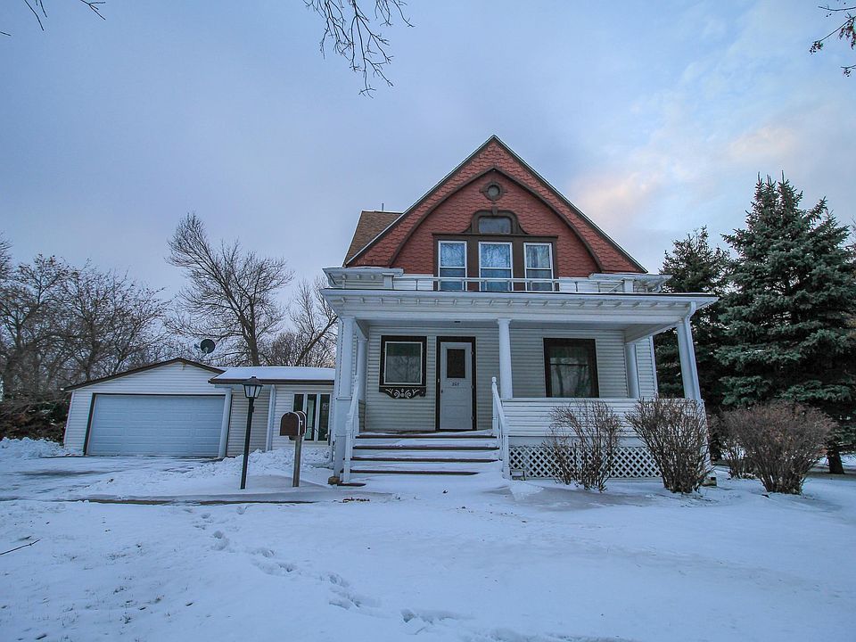 This 1906, 4 bedroom, 1.75 bathroom home is full of breathtaking, detailed character and just waiting to be made into a home! Grand staircase, large kitchen, dedicated dining room, a porch to watch the sunrise and a patio to enjoy the sunsets on almost half an acre - what more could you want?! Two car attached garage built out for a dog kennel, leads to a breezeway brings you into the back entryway of the home to go up to the main level or down to the basement. a 3/4 bath on the main level with main level laundry as well. Upstairs are 4 bedrooms and a gorgeous updated full bathroom. Primary bedroom features a sliding barn-door revealing a walk-in closet. Call your favorite Realtor® to see this one quickly before it's gone!