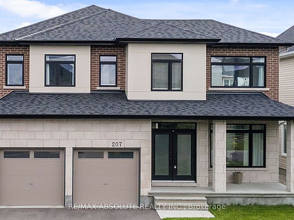 This beautifully upgraded Claridge Lockport II offes over 3,600 sq. ft. above grade, plus a well designed rec room in basement. Perfectly situated in one of Stittsville's most family-friendly neighbourhoods, this home blends space, style, and comfort. Step inside and immediately feel the spaciousness of this thoughtfully designed layout. The bright foyer opens to a separate family room filled with natural light from large windows, creating an inviting first impression. As you move through the home, the elegant formal dining area welcomes you with soaring vaulted ceilings and rich, upgraded wide-plank hardwood floors that seamlessly flow throughout the main level. At the heart of the home is the expansive kitchen, ideal for both everyday living and entertaining. It features quartz countertops, a large island with seating, and ample cabinetry. The kitchen flows effortlessly into the living room, where a cozy gas fireplace creates the perfect gathering spot. A casual dining area just off the kitchen provides access to the fully fenced backyard. Adjacent to the main living area, a quiet office or den with its own fireplace offers the perfect space to work from home or unwind in peace. Nine-foot ceilings on the main floor enhance the openness and upscale feel of the home. Upstairs, the spacious primary suite offers a generous walk-in closet and a luxurious ensuite with a double vanity, freestanding soaker tub, and glass-enclosed shower. Three additional bedrooms are bright and well-sized, complemented by a stylish main bath. The finished basement provides incredible flexibility. Whether you envision a home theatre, gym, or playroom there's space for it all. Additional highlights include a double-car garage, upgraded lighting, central air conditioning, and fenced yard. All of this is located just minutes from top-rated schools, parks, trails, shopping, and public transit.