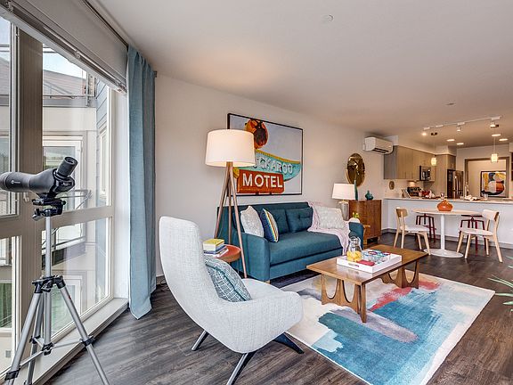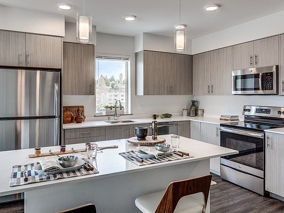 In the heart of Kirkland's Park Lane pedestrian oasis. Two blocks from sparkling Lake Washington. Vibrantly designed living spaces with air conditioning, modern tonal finishes, quartz counters and view decks. Resident 24-hour fitness center, community terraces with BBQs and active neighborhood scene. Viva la Voda!