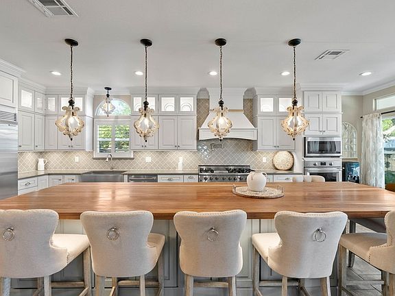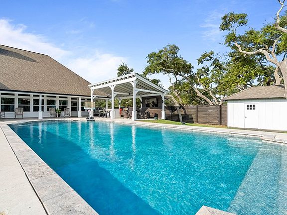 Detached workshopMature oak treesOutdoor kitchenOutdoor cooking areaResort-style poolAbundant natural lightSoaring vaulted ceilings