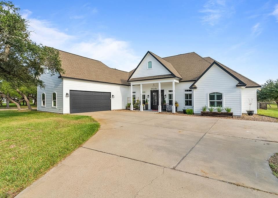 Discover the perfect blend of luxury, privacy, and country living at 207 Portia—an impressive custom-built home situated on 2 serene acres complete with a detached workshop, pool and outdoor kitchen, the ideal setting for outdoor enthusiasts. From the moment you arrive, this property makes a statement with its gorgeous architectural design, mature oak trees, and expansive front and back yard spaces. Step inside to an immaculate interior boasting an open, thoughtfully designed floor plan of approximately 3,300 sq. ft. Featuring 5 bedrooms and 3 baths, this home provides ample space for family, guests, and work-from-home needs. The soaring vaulted ceilings, abundant natural light, and finely appointed finishes create an inviting yet elevated atmosphere. At the heart of the home is the chef's kitchen, complete with custom cabinetry, gourmet appliances, and a stunning built-in kitchen table that serves as the centerpiece for gatherings. The HUGE primary suite offers a relaxing retreat, while four additional spacious bedrooms ensure comfort for everyone. A versatile 5th bedroom/office/craft room upstairs adds even more flexibility. Outdoor living takes center stage with a resort-style pool, outdoor cooking area, and your own private sauna room—perfect for unwinding or entertaining. The expansive driveway provides ample room for private auto, boat, or RV parking. Set in a peaceful country setting yet close to all the conveniences of town, this property offers the best of both worlds. A truly MUST-SEE home—schedule your appointment to view this exceptional property today!