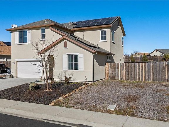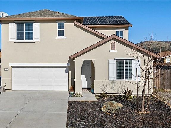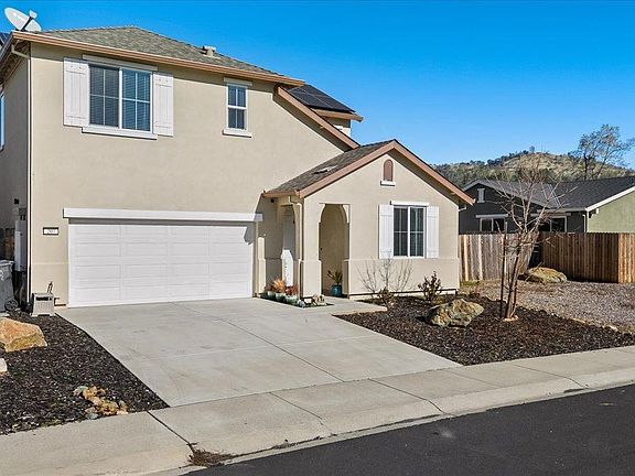 Welcome to Copper Crest, one of the newer subdivisions in Copperopolis. This nicely maintained, contemporary style, two story home, built in 2020, over 2100 sq.ft features 4 bedrooms and 3 full baths. The entry hallway leads to a spacious open concept kitchen living area with plenty of natural lighting and backyard access. Dine in kitchen displays granite counter tops, spacious island, breakfast bar, stainless appliances and a nice sized pantry closet. One sizeable bedroom and a full bath are also on this level. Make your way upstairs to find three additional large bedrooms, full bath and the convenience of an indoor laundry room. An expansive primary suite perfectly situated with sitting area, adjoining bathroom, private commode, walk-in shower, dual sinks and extra large walk-in closet. There's no shortage of storage room here. Outdoors you will find low maintenance landscape. The well kept back yard displays artificial grass perfect for year around enjoyment and plenty of room for entertaining guests on the expansive side patio and front yard mulch minimizes the use of water. This home is also exceptionally eco-friendly with clean energy in mind. Solar with backup battery, which is being financed to own, takes advantage of no outages when the grid goes down and very minimal pg&e bills!! Additionally this home is within walking distance to shopping & dining and only a short drive to Copperopolis Town Square where visitors come from near & far for annual events. If you enjoy watersports, boating & fishing, beautiful Lake Tulloch is just down the road and there is Copper Valley golf course as well. Come take a look at this affordable foothill home just an hour drive to the central valley.