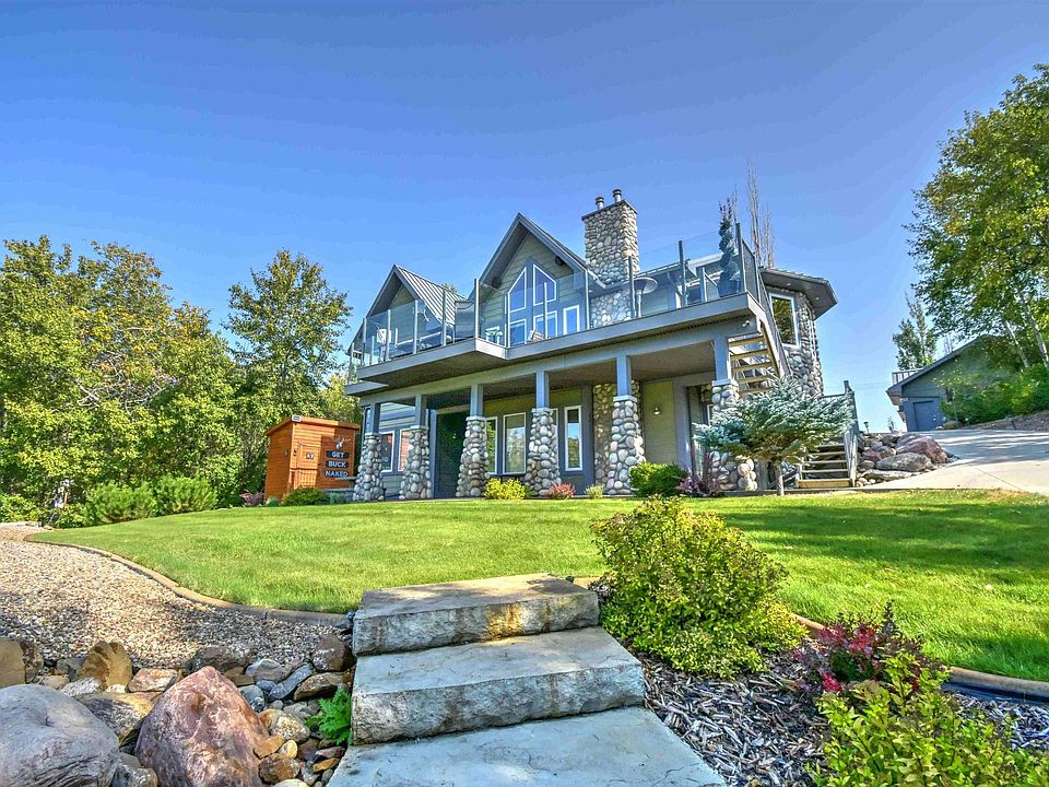 Your dream lakefront home is here at Lac Sante! This quality-built, property offers a blend of both comfort & rustic cabin charm. The open-concept main floor boasts vaulted ceilings, a large kitchen with bar seating, a dining area & a stunning living room with floor-to-ceiling windows, a cozy gas fireplace & gorgeous waterfront views. Two spacious bedrooms, each with their own ensuite, plus a convenient 2 pc bath complete the main level. The walkout basement features a huge family room with fireplace, 3 additional bedrooms & a unique 5-pc shower room - perfect after a long day at the beach. Step outside to enjoy the concrete patio below or relax on the expansive composite deck with glass railing above. Feel like you’re at a resort with the fire pit area, beach access & picturesque landscaping. A triple heated garage provides plenty of space for vehicles & toys. Just 2 hrs from Edmonton, this is the ultimate lake getaway with upgrades & features that must be seen to be truly appreciated.