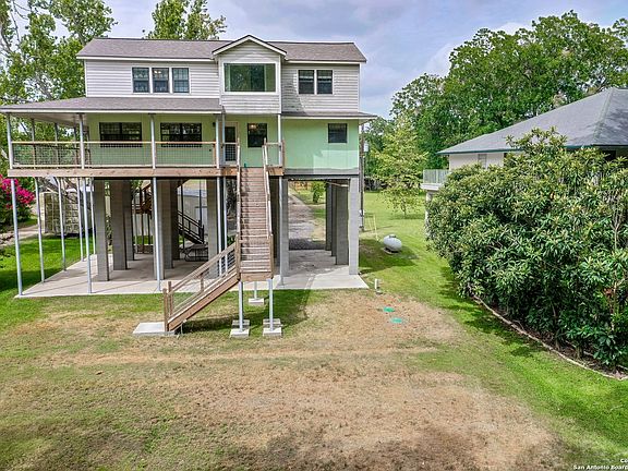 WATERFRONT LAKE PLACID 2-story home w/ private road gated access off Reiley Rd & approx. 60' of river front access w/ 2 docks along the Guadalupe River. Home was lifted in 2019 above flood level FEMA recommended contractor (see attached documentation). Roof replaced 2018, completely new AC & Septic systems installed in 2019. Approx. 800sf detached metal garage shop. Reside full time on the river, great weekend hideaway or short / long term rental, the possibilities are endless!